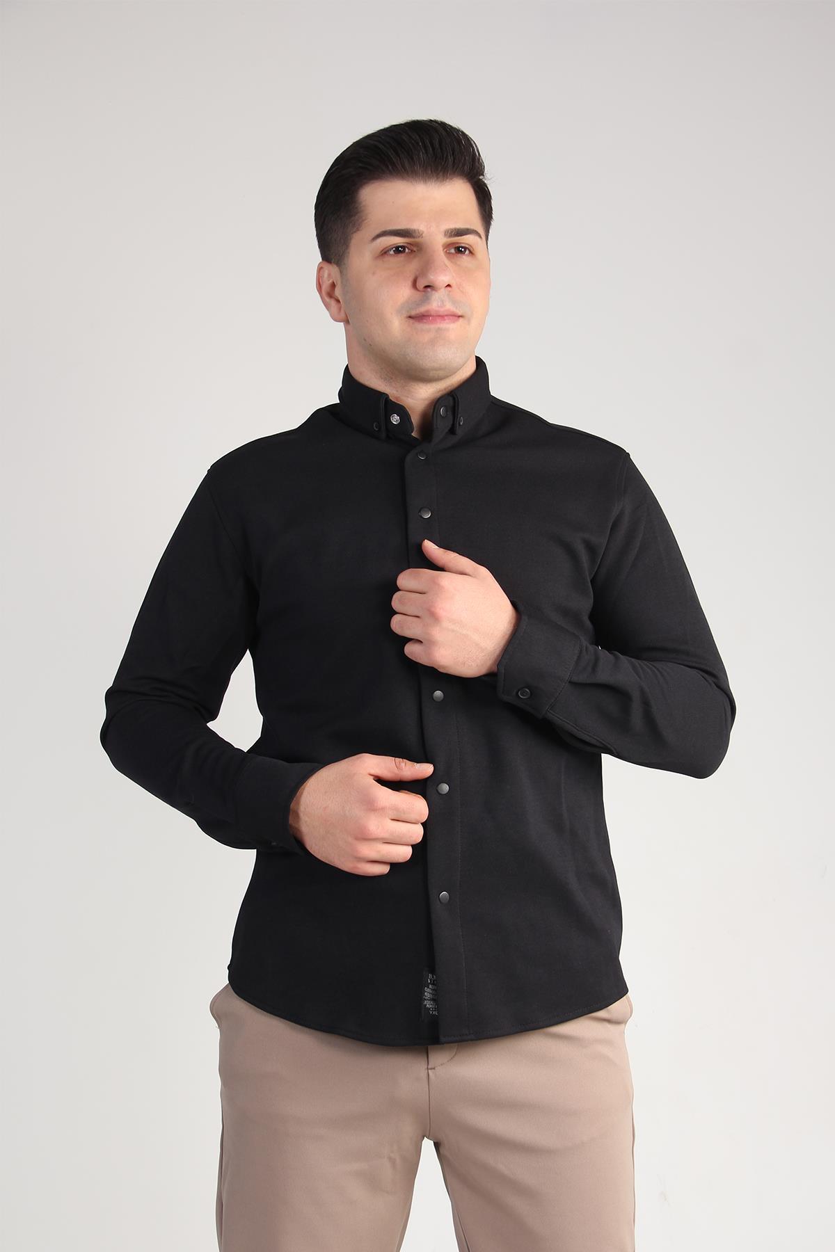 16898 Çıt Çıt Düğmeli Örme Double Face Body Gömlek