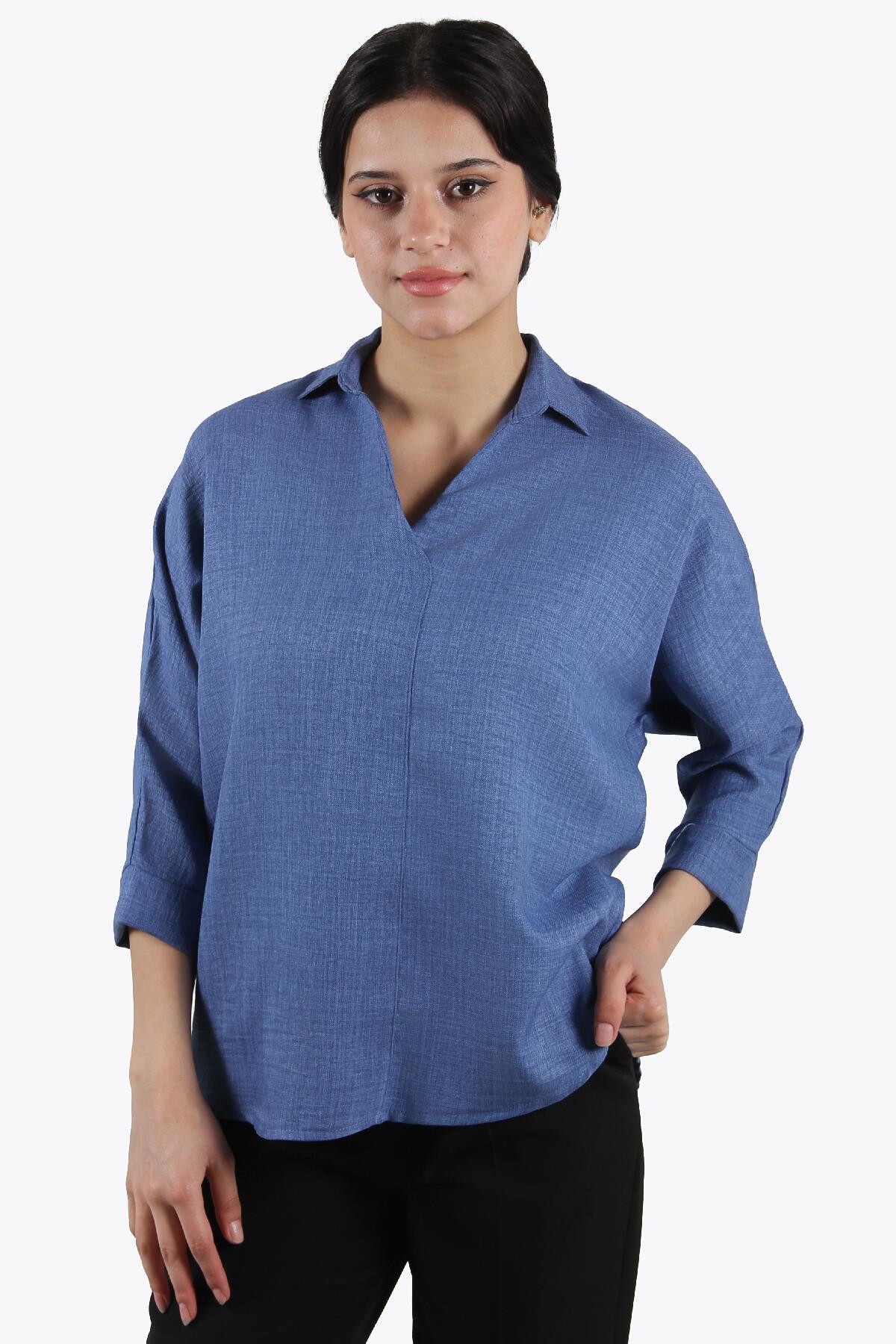 24774 Önü Dikişli Yarım Kol Keten Gömlek