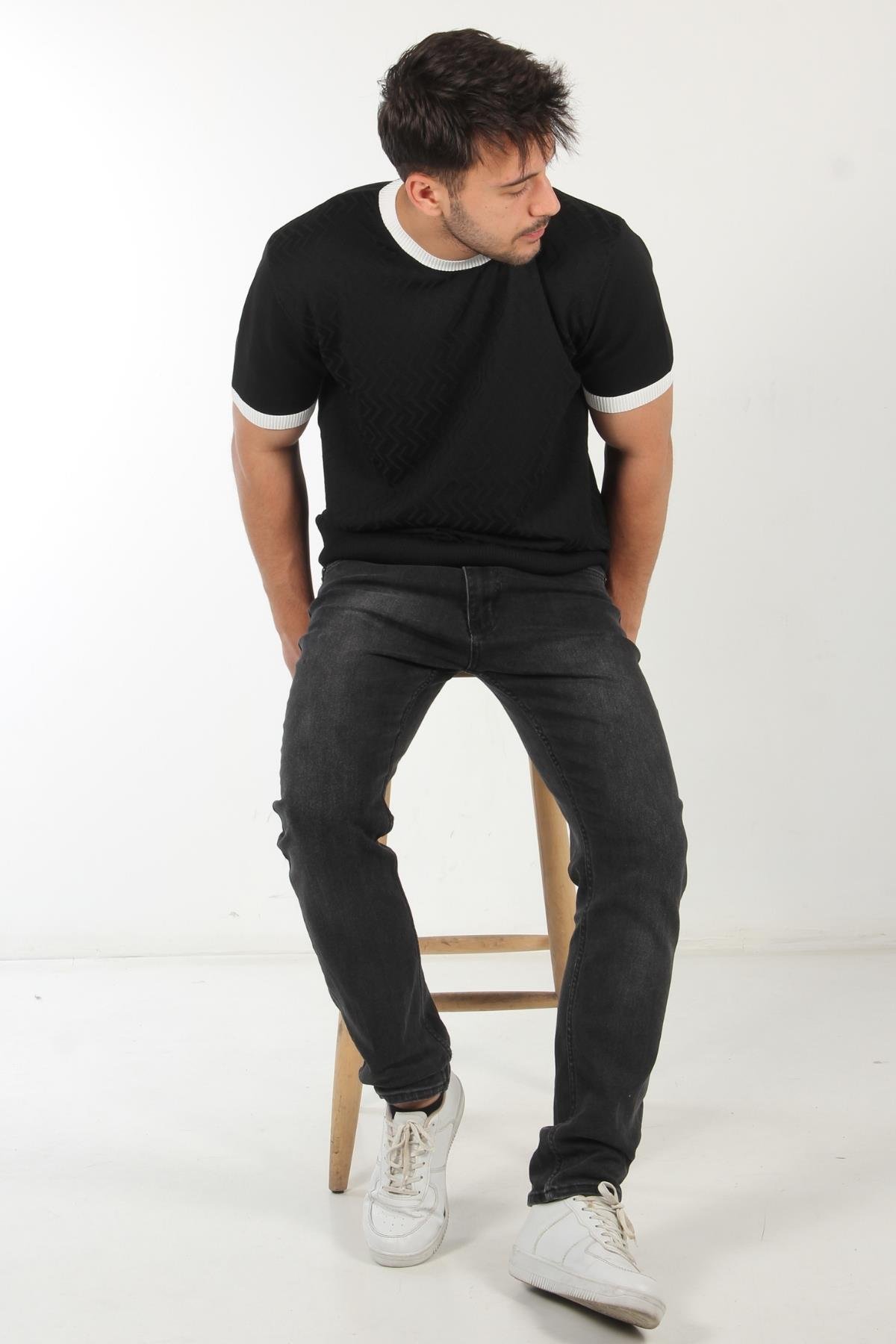 33221 Yaka Kol Ucu Farklı Zikzak Desen Triko T-shirt