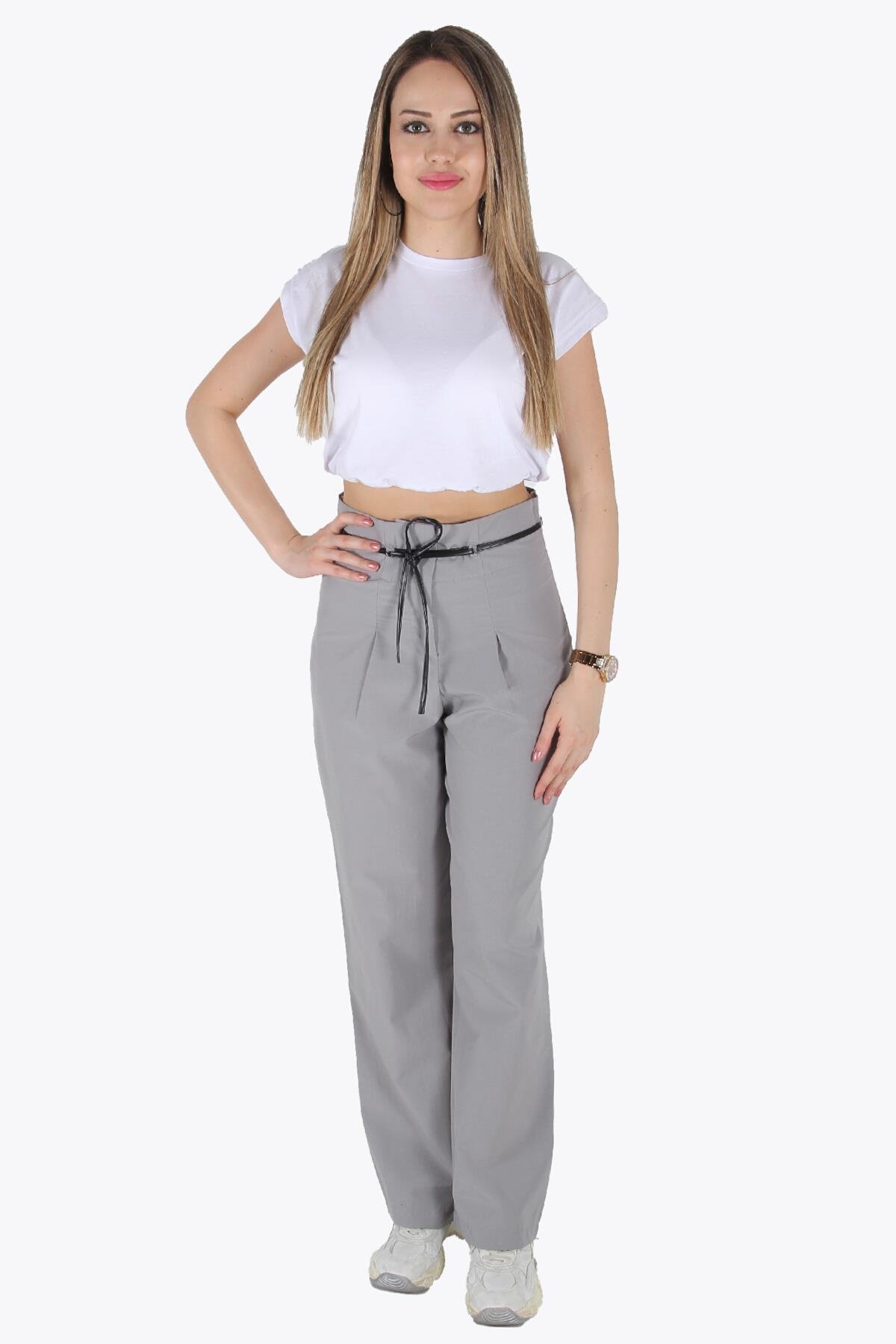 36097-1 Deri Kemerli Bol Paça Pantolon