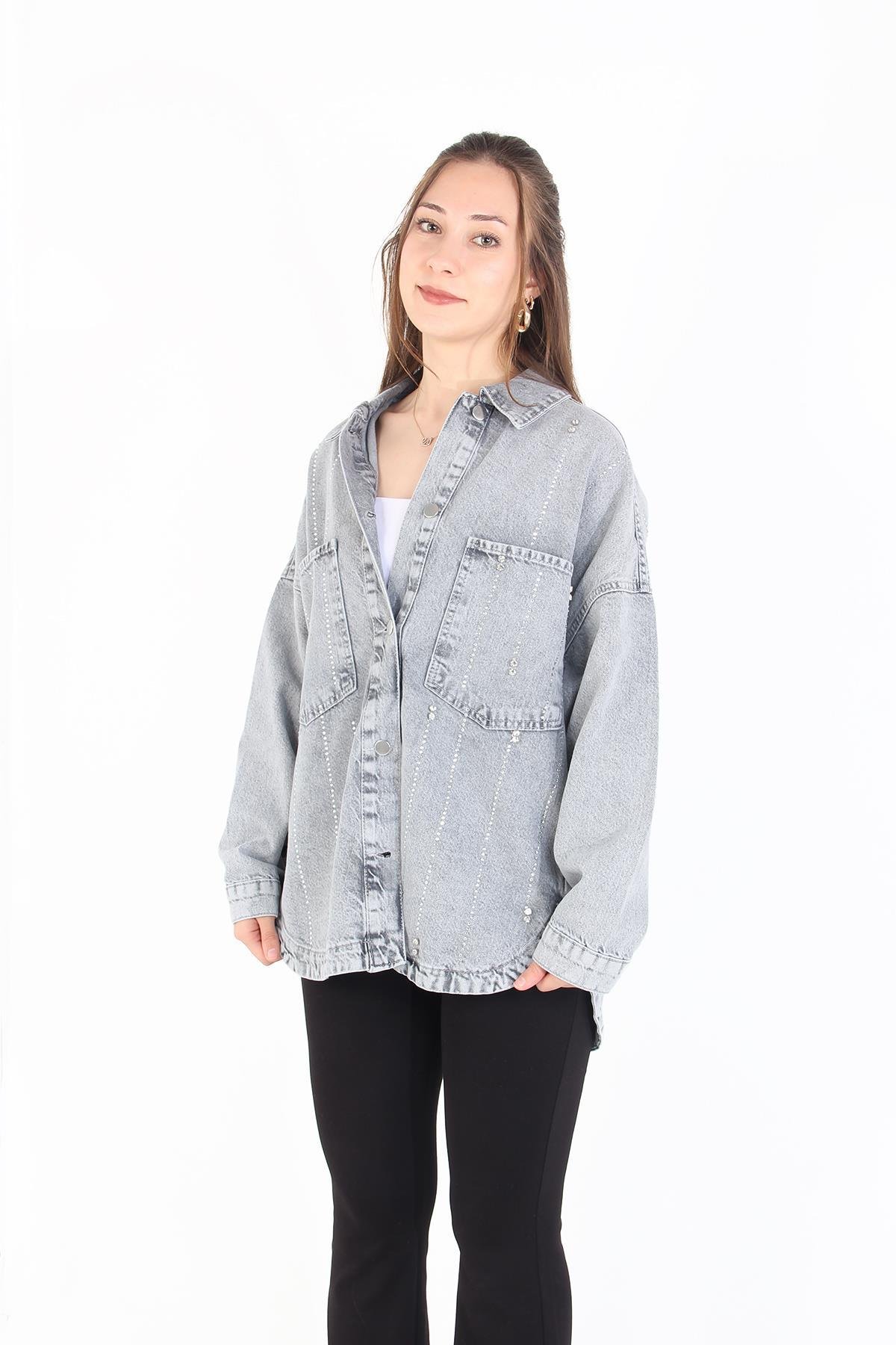 379 Çift Cep Damla Taşlı Kot Gömlek