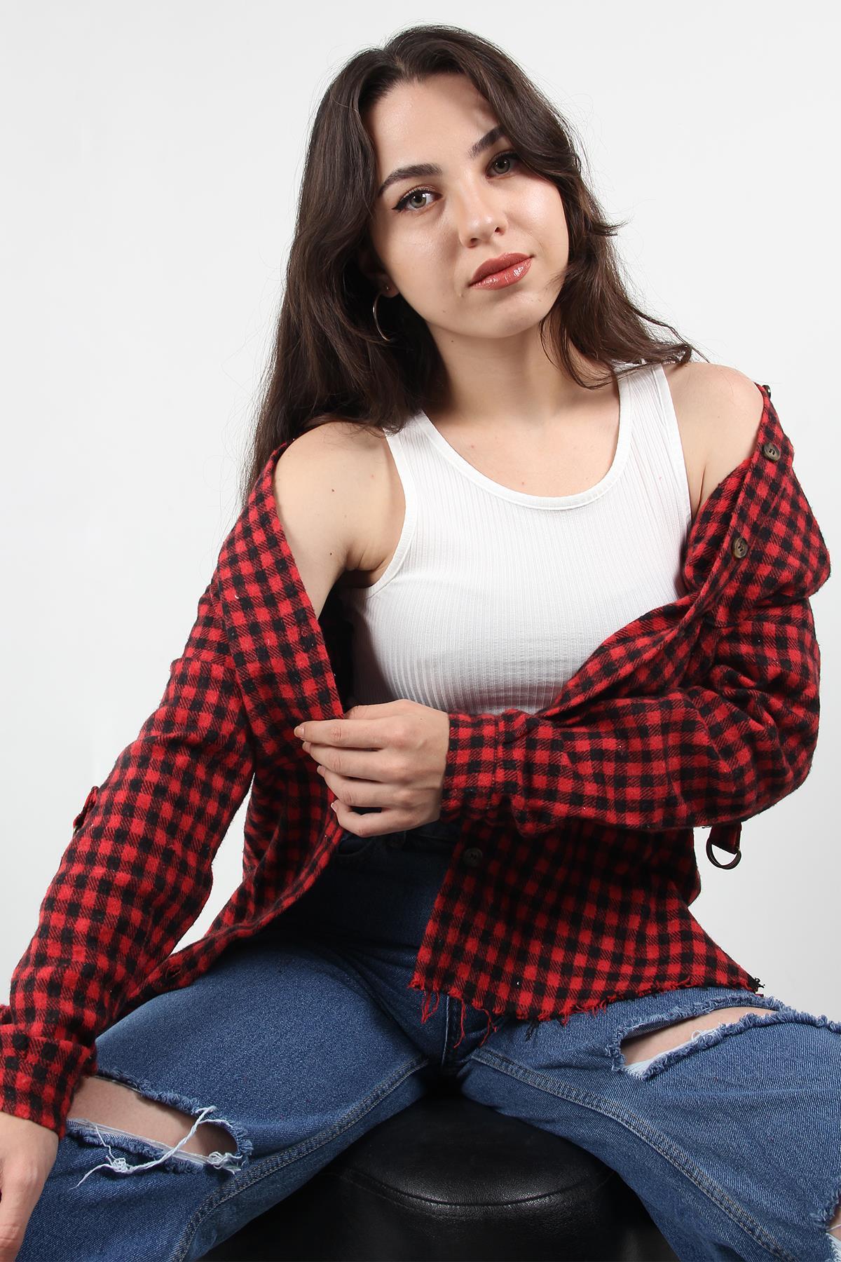 4201 Sol Göğsü Cepli Eteği Püsküllü Oduncu Gömlek