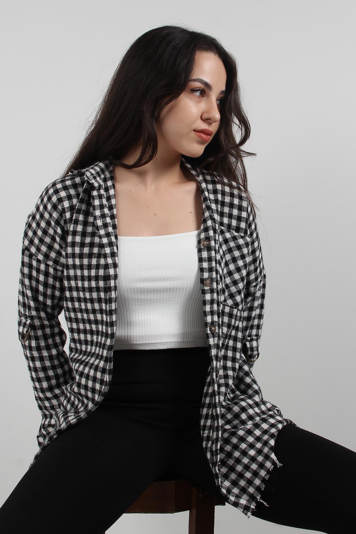 4201 Sol Göğsü Cepli Eteği Püsküllü Oduncu Gömlek