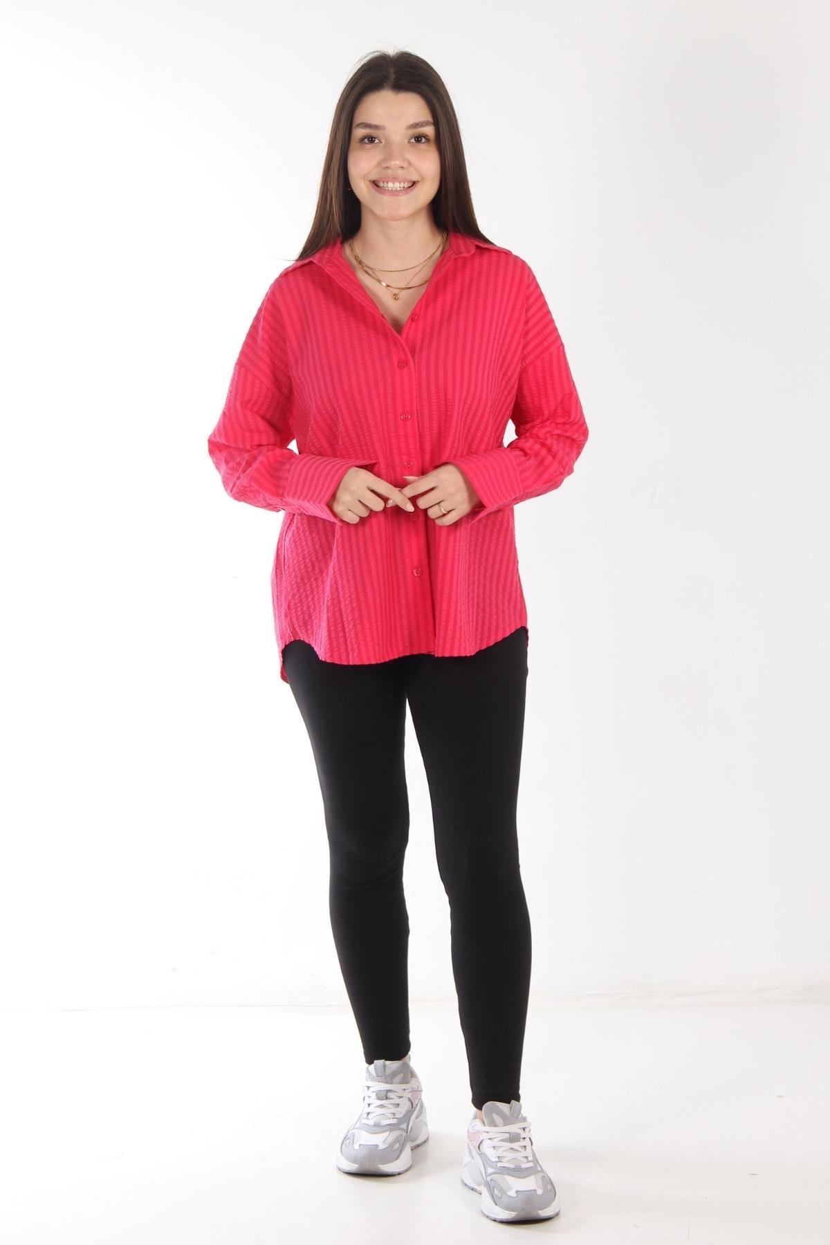 5496 Kendinden Büzgülü Çizgili Gömlek