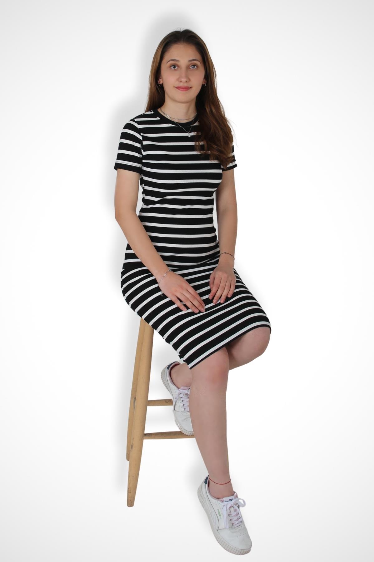 Elbisemckanzie5700 (N-1050) Kısa Kol Çizgili Kaşkorse Elbisekadınerkek