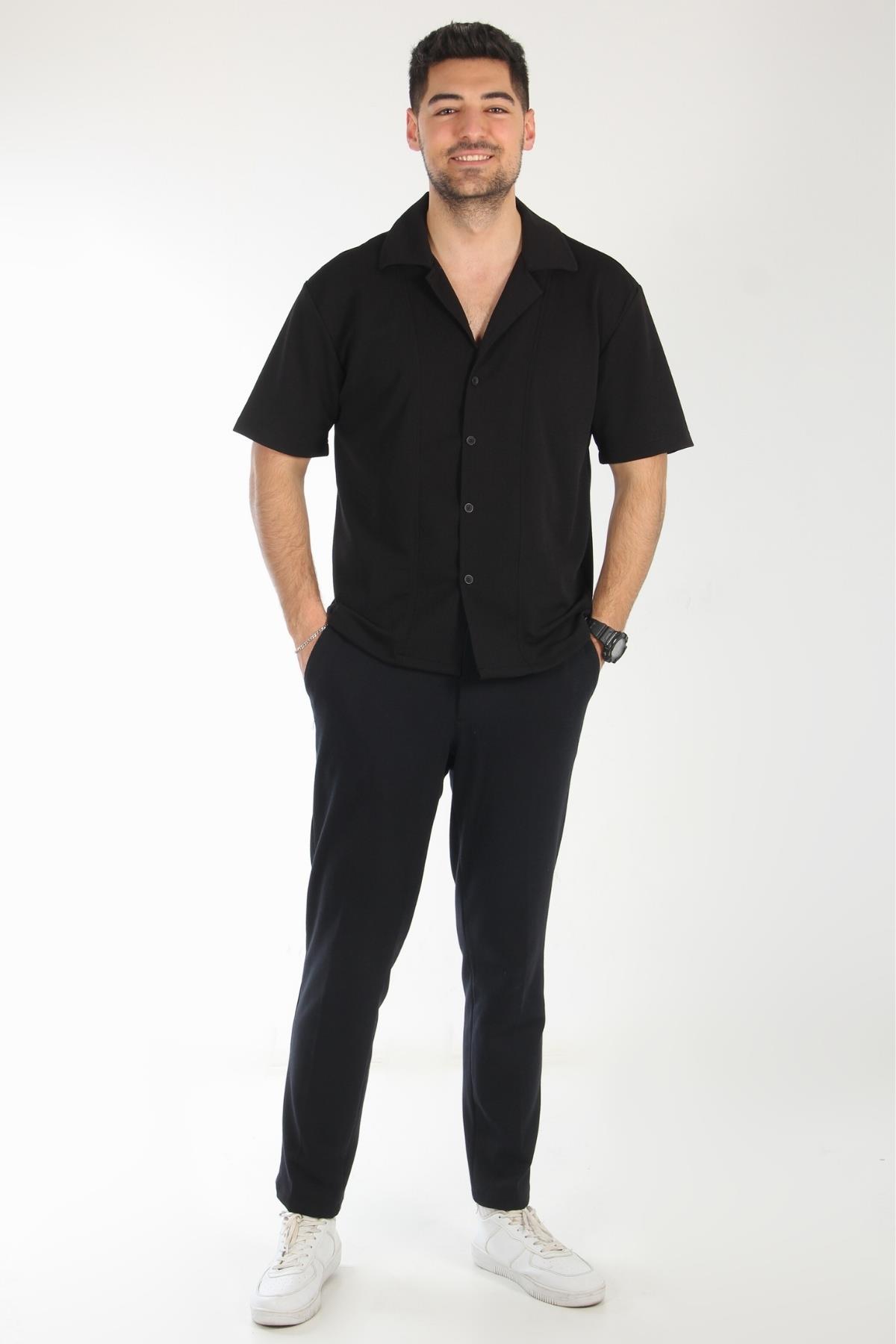 6304 Düğme Yeri Parçalı Kısa Kol Gömlek