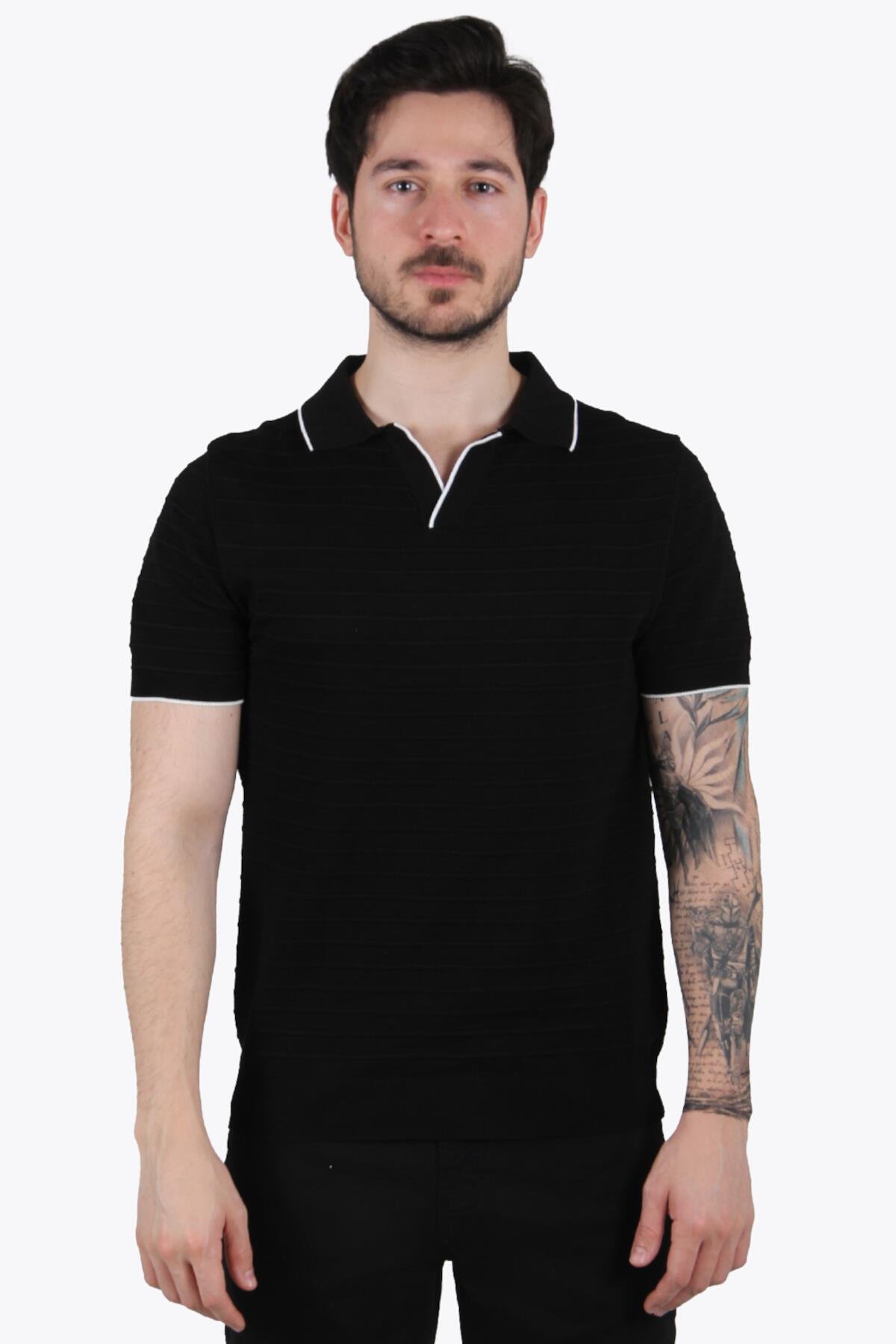 66530 Kendinden Şeritli Triko Polo Yaka T-shirt