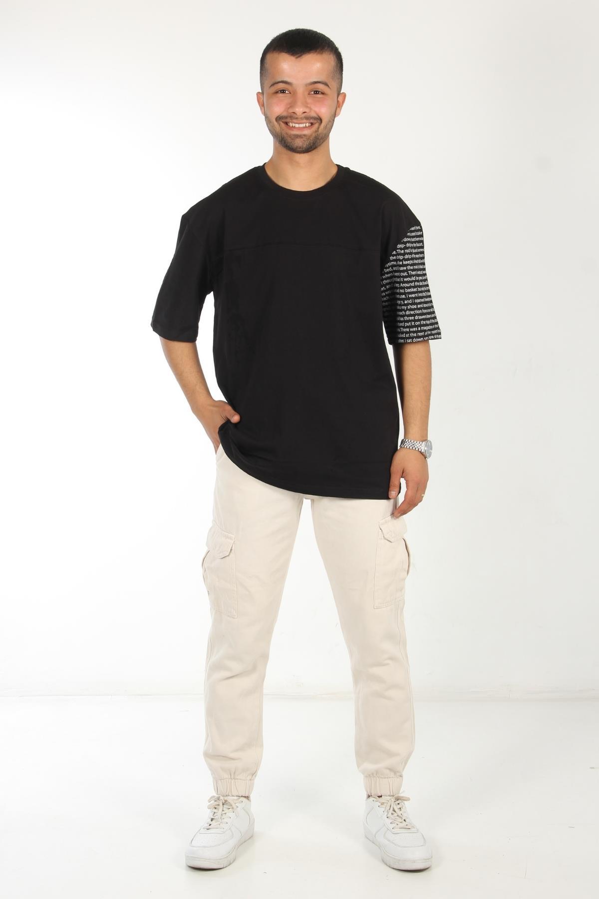 7134 Kolu Makale Yazı Detaylı Oversize T-shirt