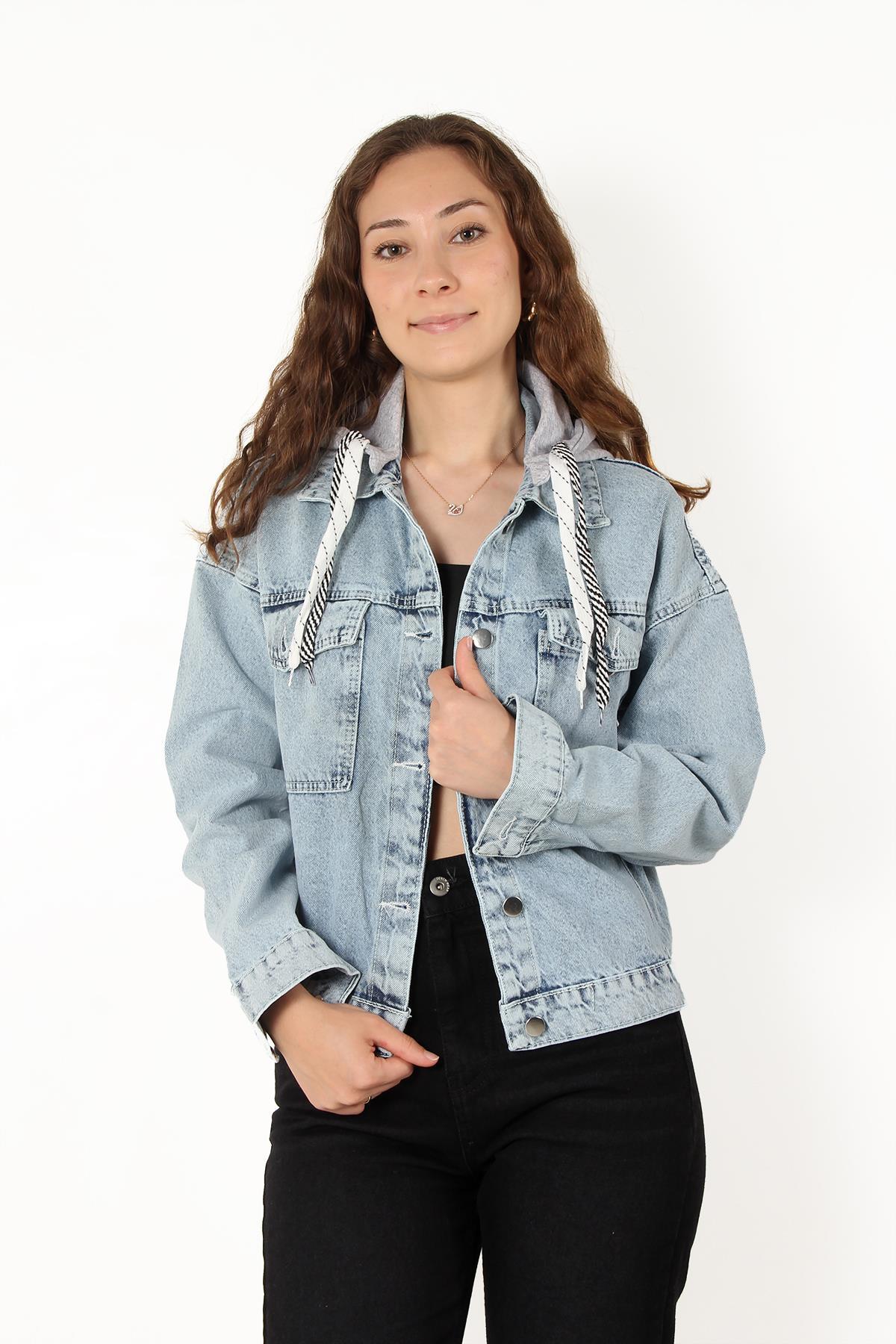 820 Çift Cep Kapaklı Kapşonlu Kot Ceket