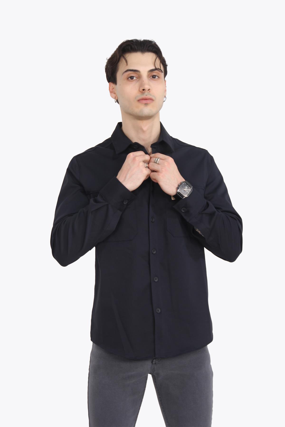 9082 Çift Cep Kapaklı Süet Gömlek