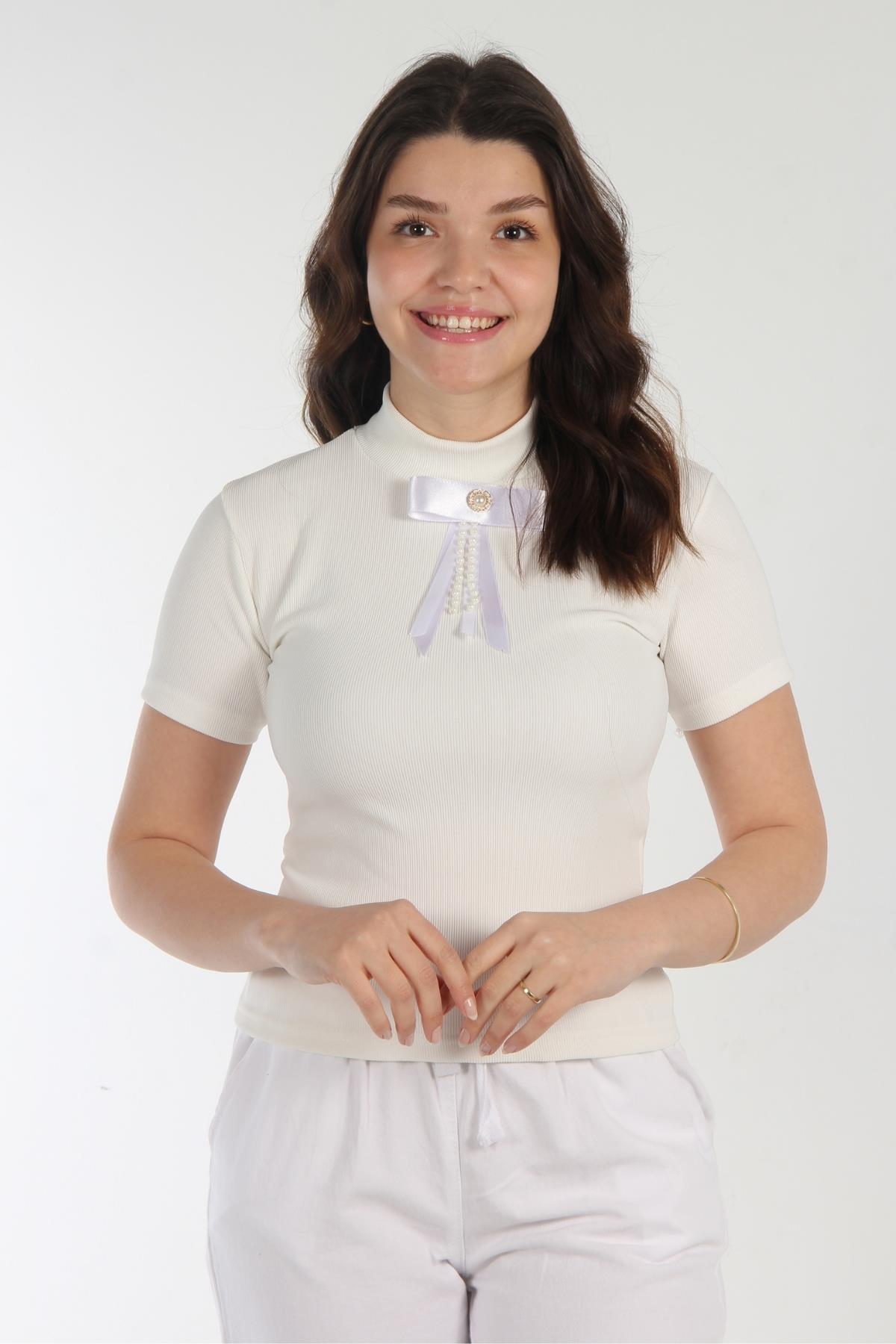 926 Broşlu Yarım Balıkçı Kısa Kol Bluz