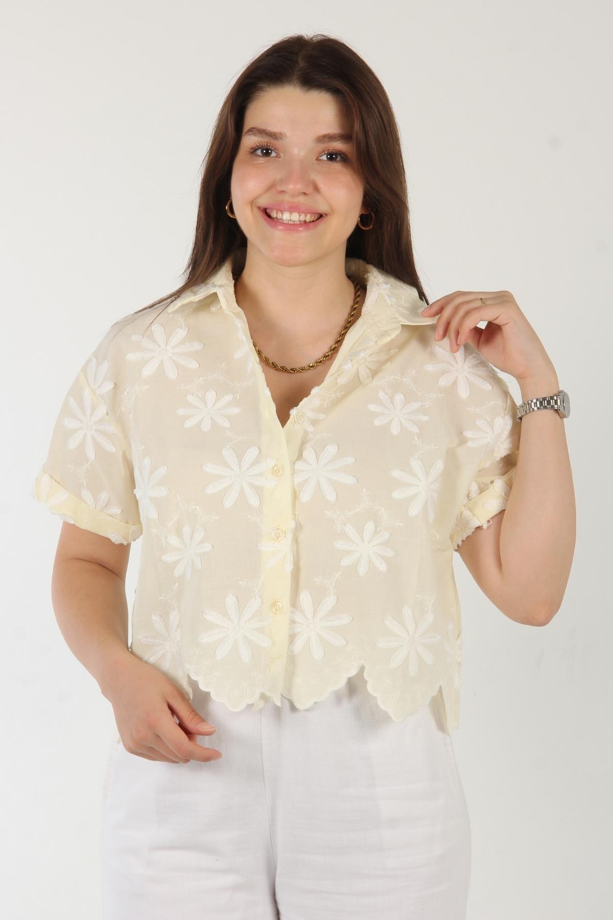 D2858 Çiçek Nakışlı Gömlek