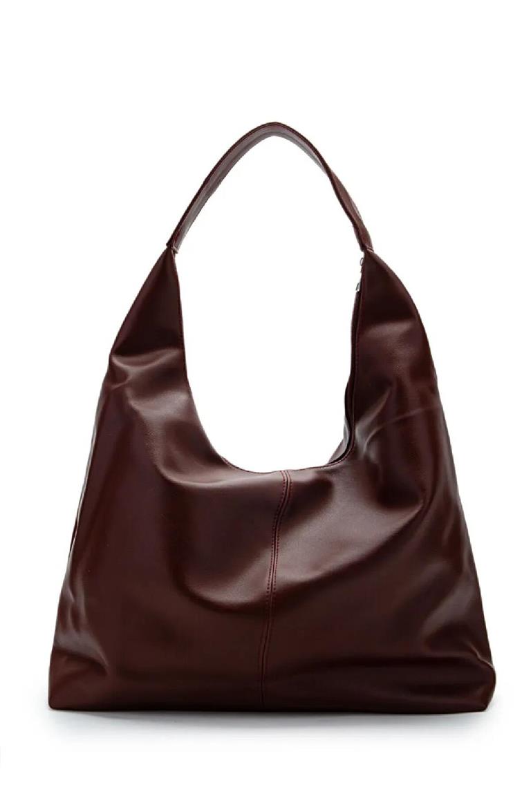 Oval Sap Ortası Dikişli Büyük Boy Fermuarlı Omuz Tote Çanta