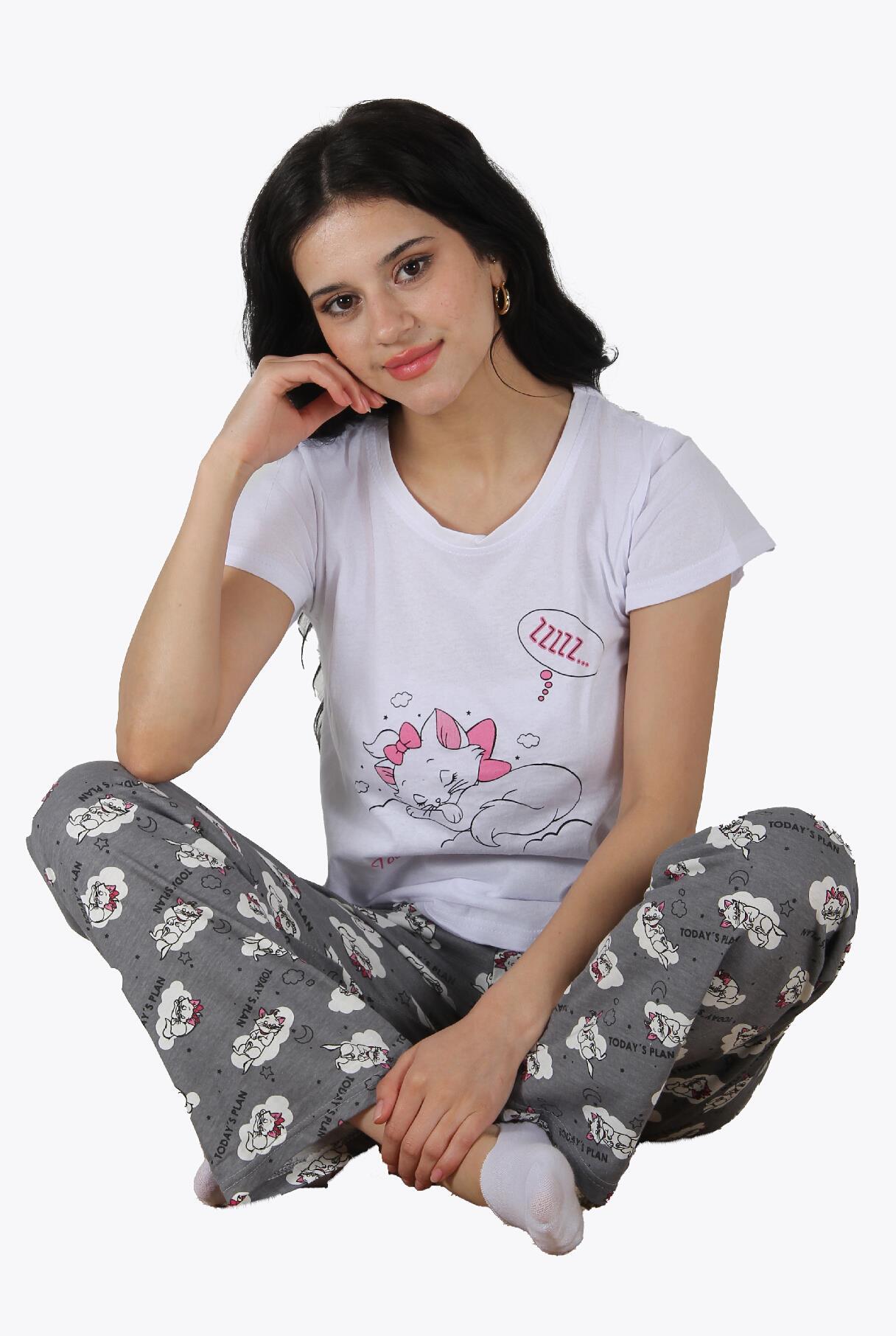 Pijama TakımımckanzieUyuyan Kedi Baskılı Pijama Takımıkadınerkek